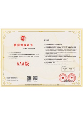 先后通過(guò)ISO9001國(guó)際質(zhì)量體系認(rèn)證、ISO14001國(guó)際環(huán)境體系認(rèn)證、OHSAS18001國(guó)際職業(yè)健康安全體系認(rèn)證及315:9002國(guó)際信用管理體系認(rèn)證、CE認(rèn)證以及取得國(guó)家知識(shí)產(chǎn)權(quán)多項(xiàng)實(shí)用型專利。