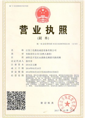 江蘇三毛教儀成套設(shè)備有限公司是一家集設(shè)計(jì)、生產(chǎn)、銷售、售后為一體的大型制造企業(yè)。坐落于風(fēng)景秀麗的花木之鄉(xiāng)、全國(guó)經(jīng)濟(jì)百?gòu)?qiáng)縣、國(guó)家級(jí)經(jīng)濟(jì)開(kāi)發(fā)區(qū)沭陽(yáng)縣永嘉路。
